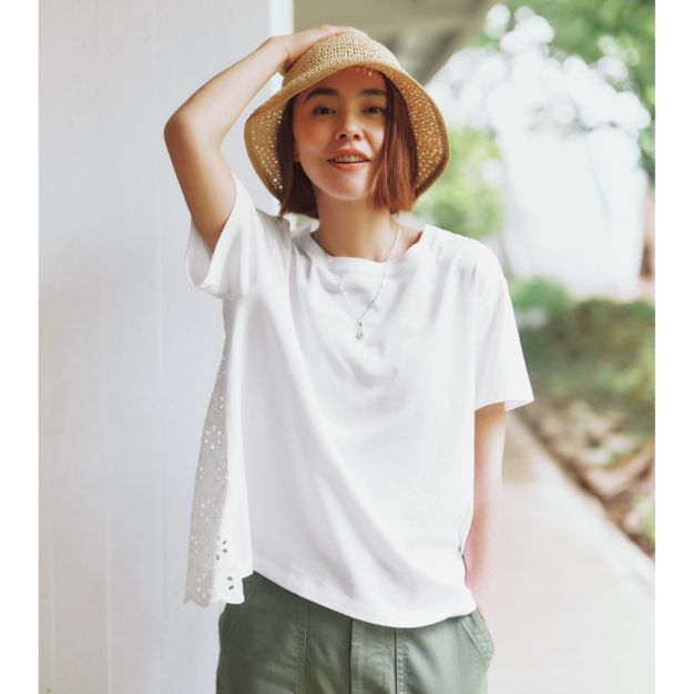 自由区>トップス 【カタログ掲載・洗える】レースエッジ Tシャツ &...